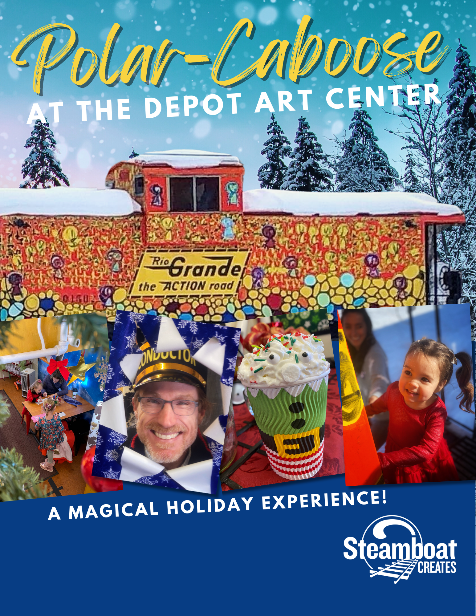 Climb aboard for a magical holiday adventure inside Steamboat Creates’ historic Polar Caboose!  Each Saturday, families can step into a festively decorated caboose filled with twinkling lights, holiday music, and pure winter wonder.  Advance tickets are highly recommended as there is limited space.